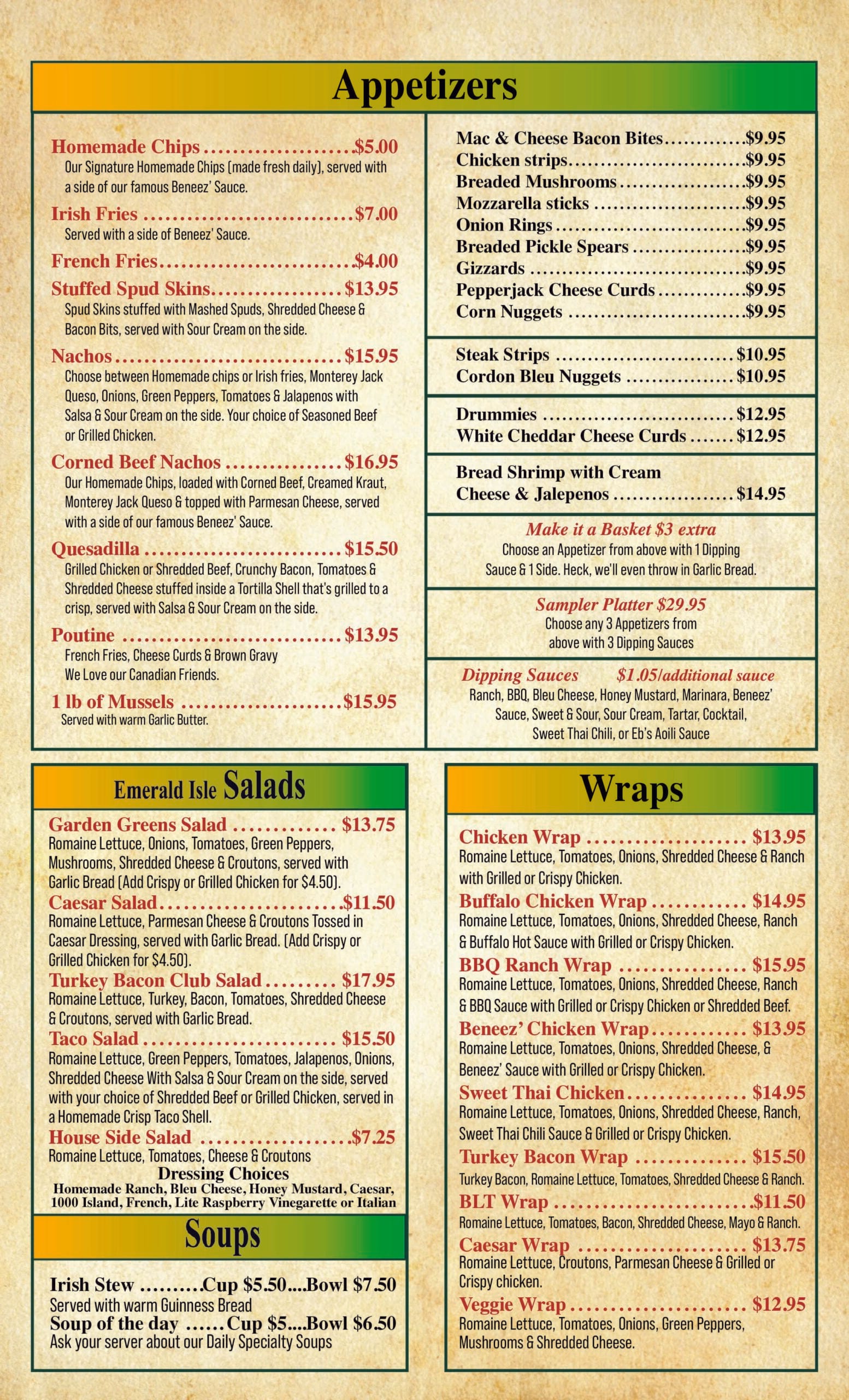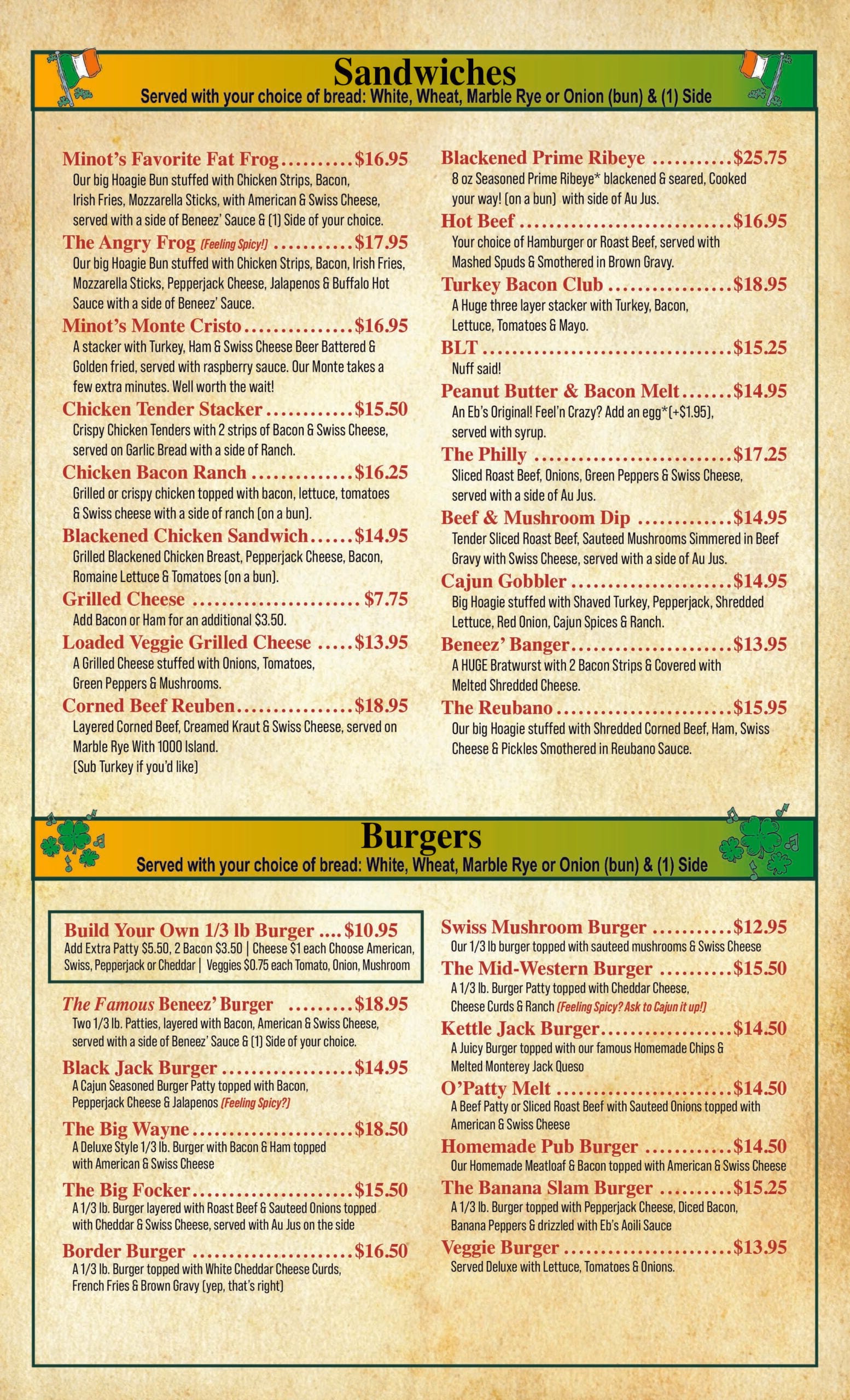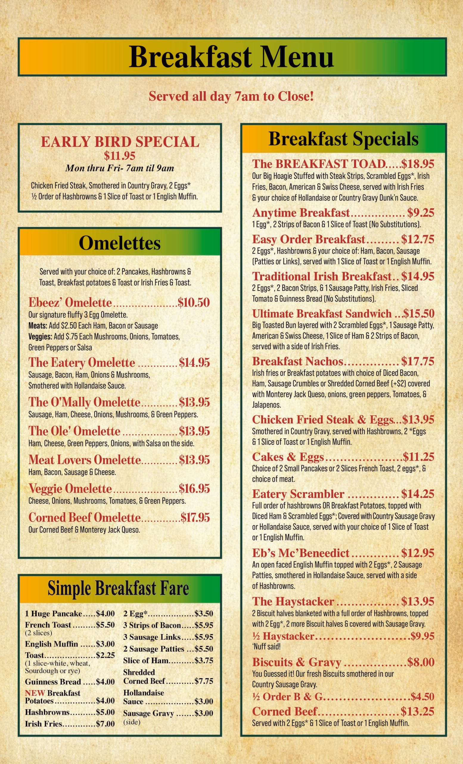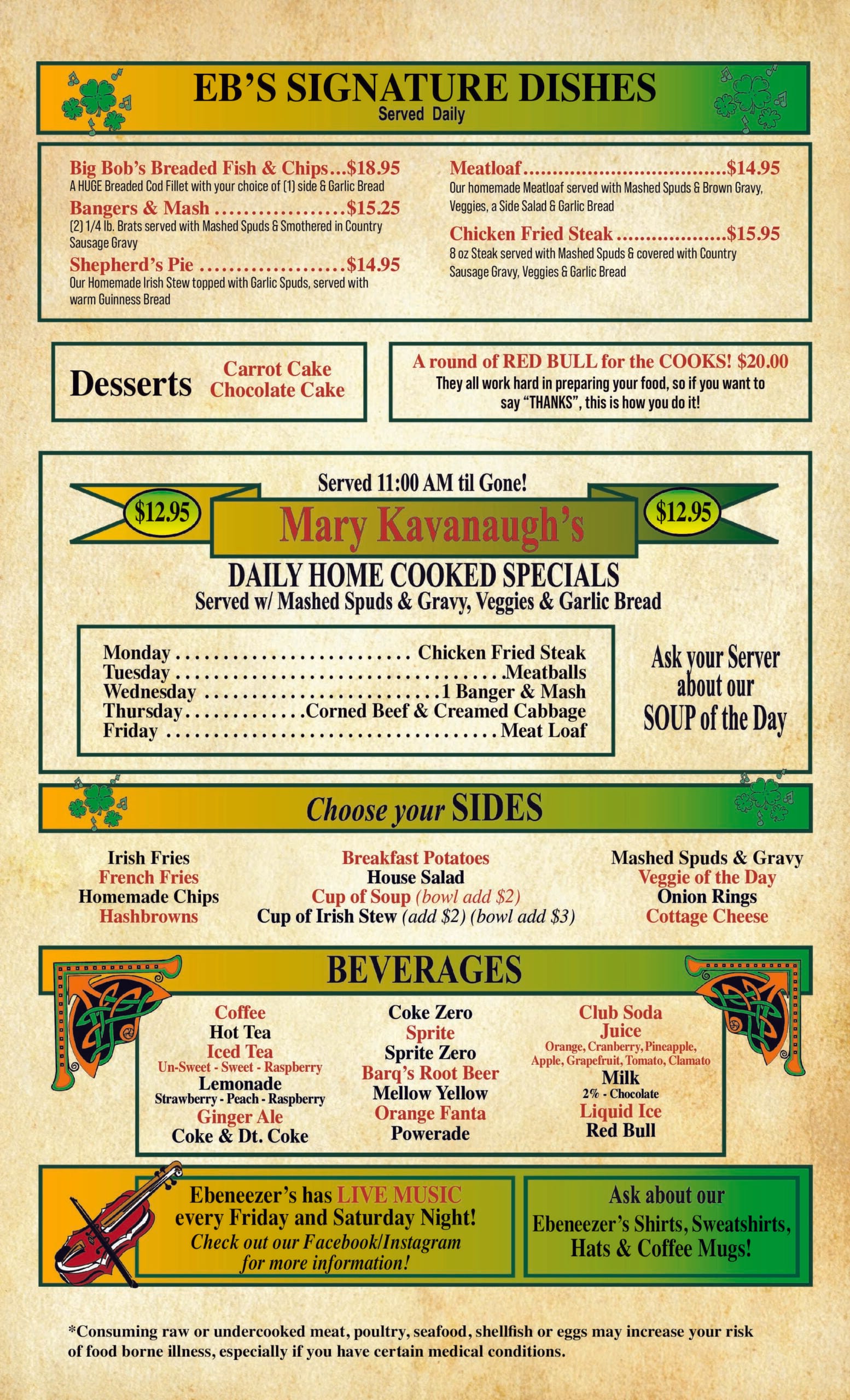 Ebeneezer's Menu